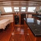 Culinary delights await as the yacht’s experienced chef crafts an exquisite menu of Mediterranean specialties and international flavors. The stylish and well-equipped galley is designed to offer both aesthetic appeal and top functionality, ensuring an exceptional dining experience.